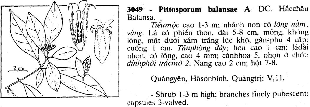 Tên khoa học: Pittosporum balansae Aug.DC.